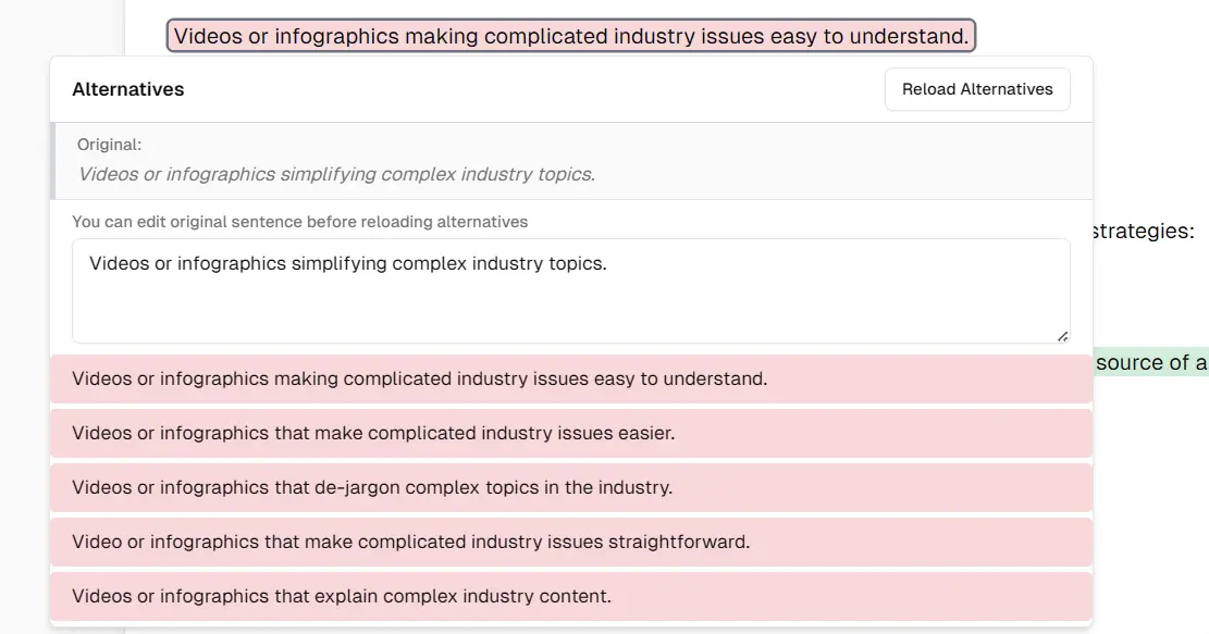 - Plagiarism-free content: The tool promises to deliver 100% original content by reimagining the source text instead of just swapping synonyms.
